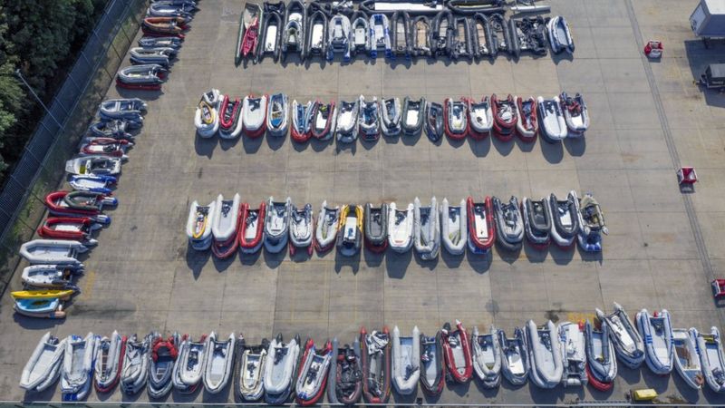 Các tàu nhỏ được di dân dùng để vượt biển vào Anh được để tại một nhà kho ở Dover