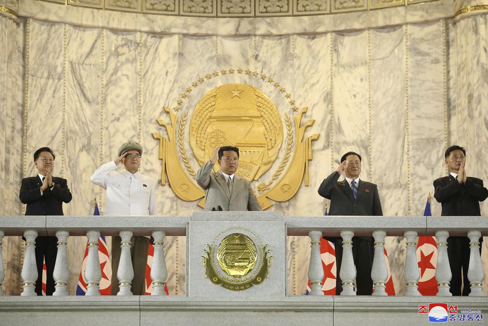 Ông Kim quan sát lễ duyệt binh kỷ niệm 73 năm thành lập đất nước.