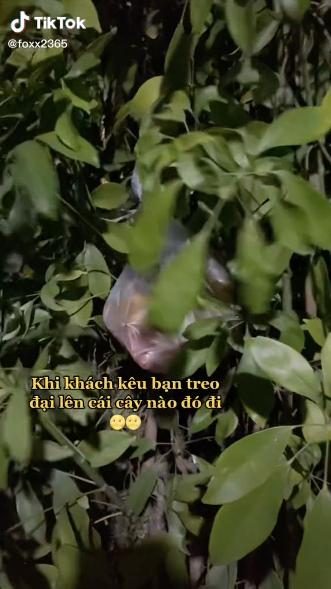 Giữa một con đường um tùm đủ loại cây và không thiếu chỗ để treo, shipper của chúng ta lại đem treo vào một bụi cây được che khuất và cực kì khó tìm. Không biết anh bạn này ngây thơ thật thà hay cũng có tí tếu táo muốn "troll" khách, nhưng tóm lại là khi nhìn vào pha xử lý đầy bất ngờ này, netizen không khỏi bật cười.