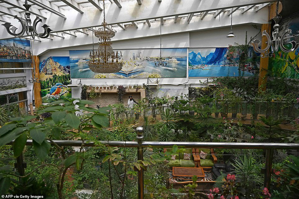 Trong các bức ảnh, có thể thấy các chiến binh Taliban thư giãn trong một nhà kính nhiệt đới rộng hàng trăm mét vuông dưới một mái kính khổng lồ.