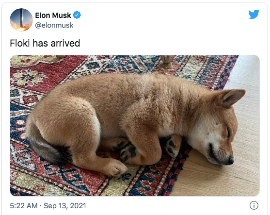 "Floki đã đến", dòng trạng thái được Elon Musk chia sẻ trên Twitter, đính kèm ảnh chó cưng đang nằm ngủ gây chú ý với nhiều nhà đầu tư tiền mã hóa.