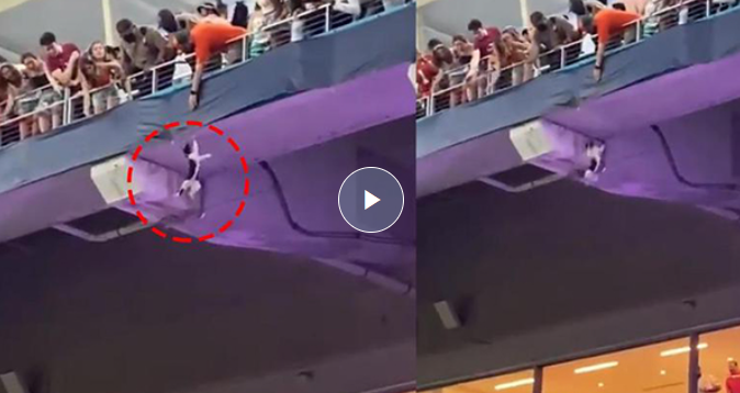 Rất nhiều cổ động viên hoảng hốt, la hét liên tục vang lên cả khán đài khi chứng kiến sự việc. Chú mèo sau đó rơi xuống tầng dưới và may mắn là các khán giả tầng dưới đã cùng nhau dùng lá cờ ra hứng. Chú mèo đã chạm được vào lá cờ trước khi rơi xuống đất an toàn.