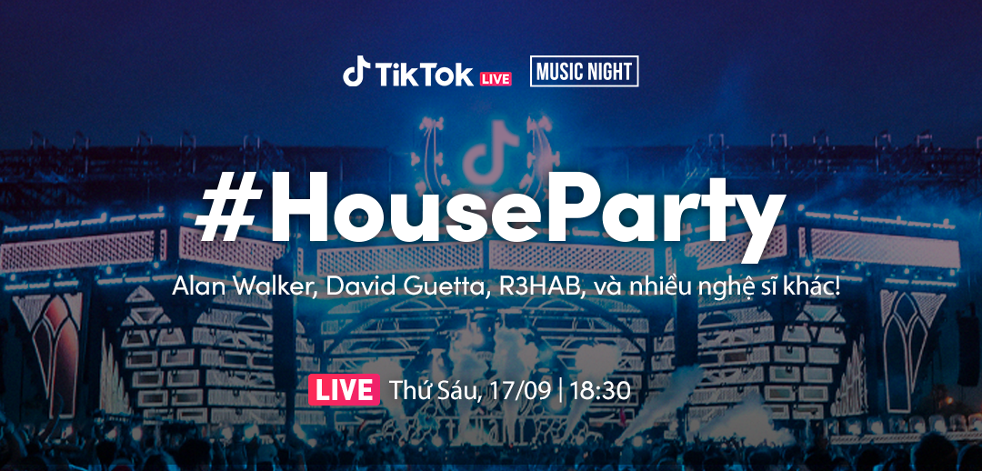Tiếp nối thành công những kỳ trước, nền tảng video ngắn hàng đầu thế giới TikTok tiếp tục tổ sự kiện âm nhạc trực tuyến TikTok Music Night tháng 9 với chủ đề #HouseParty. Đêm nhạc được phát sóng trực tiếp tại tài khoản @tiktokMusicNight vào 18h30 ngày 17/9 trên nền tảng TikTok LIVE.Bắt kịp xu hướng những giai điệu sôi động của thể loại nhạc dance đang thịnh hành trên toàn cầu, TikTok Music Night #HouseParty hứa hẹn đem tới một bữa tiệc âm nhạc náo nhiệt cho khán giả với sự góp mặt của loạt DJ siêu sao thế giới như Alan Walker, David Guetta, R3HAB. Những nghệ sĩ nổi tiếng đến từ các quốc gia châu Á cũng sẽ góp giọng trong đêm nhạc. Orange sẽ là ca sỹ đến từ Việt Nam, bên cạnh đó là Shaun (Hàn Quốc), SILVY (Thái Lan), Dipha Barus (Indonesia), 新しい学校のリーダーズ hay còn biết đến với tên ATARASHII GAKKO! (Nhật Bản), CORSAK (Trung Quốc), MJ Kuok & MYRNE (Singapore)...