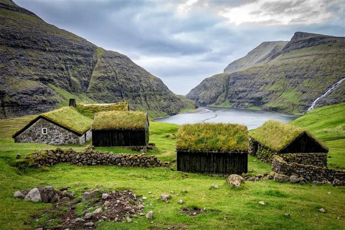 Nét độc đáo của Faroe chính là những ngôi nhà cổ kính với mái ngói trồng cỏ xanh tươi tốt. Dọc theo các con đường ngoằn ngoèo, du khách có cơ hội được chiêm ngưỡng và "chụp ảnh đến mỏi tay" trước nhiều ngôi nhà đặc biệt này. Kiểu dáng nhà được người dân xứ Faroe xây dựng cách đây hàng nghìn năm nhằm bảo vệ mọi thứ bên trong khỏi sự ẩm ướt của những cơn mưa. Trải qua bao năm tháng cùng thăng trầm của lịch sử, các ngôi nhà trồng cỏ xanh trên mái ở Faroe vẫn tồn tại và trở thành một trong những biểu tượng của hòn đảo.