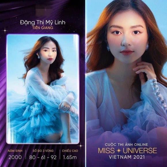 Cô nàng đang theo học ngành Tài chính - Ngân hàng tại Đại học Văn Lang, Đặng Thị Mỹ Linh (sinh năm 2000) đến từ Tiền Giang, đã gạt bỏ sự rụt rè và tự ti về bản thân để quyết định đăng ký tham gia cuộc thi ảnh online Hoa hậu Hoàn vũ Việt Nam 2021 để khám phá những điều mới mẻ trong cuộc sống, đồng thời cô khẳng định thông điệp “Bạn luôn xinh đẹp theo cách riêng của mình”.