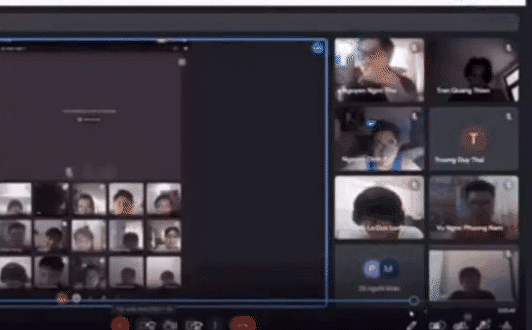 Ở đoạn sau video, giảng viên hỏi "còn ai không nghe nữa không?", rồi yêu cầu từng sinh viên trong lớp mở webcam lên hết, mở micro của mình, ngồi rõ mặt trong khung hình, nói lại câu khẳng định: "Tôi tên Nguyễn Văn A... có đủ miệng và tai, giác quan như người bình thường...".