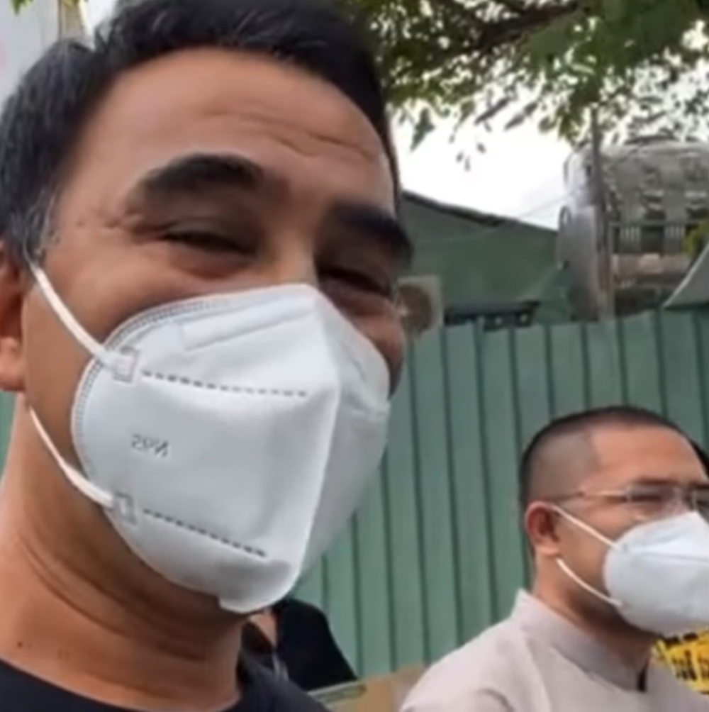 Tiếp đó, Quyền Linh dặn dò bà con xóm nghèo: "Bà con ở đâu cứ ở đó, từ từ rồi chúng tôi sẽ tới, không nên tụ tập đông người. Yên tâm là ai cũng có phần. Mọi người cố gắng đảm bảo giãn cách.