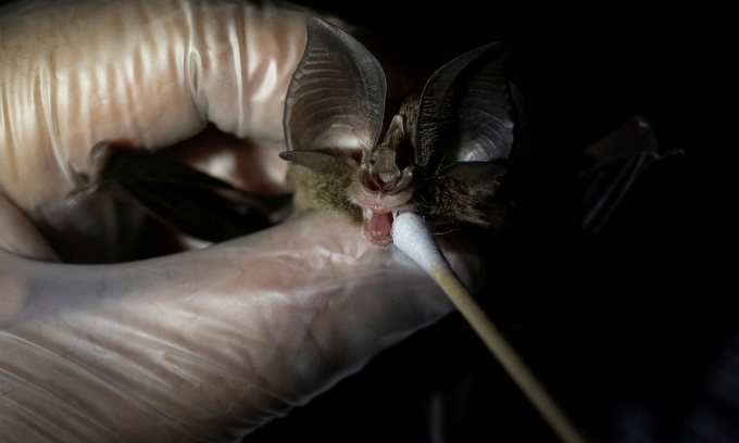 Nhà khoa học thu thập mẫu nghiên cứu từ dơi tại tỉnh Laguna, Philippines, hồi tháng 3. Ảnh: Reuters.
