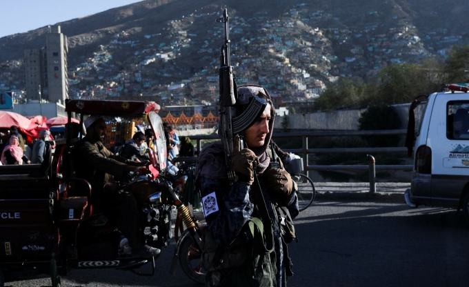 Tay súng Taliban đứng gác trên đường phố Kabul, Afghanistan, hôm 16/9. Ảnh: Reuters.