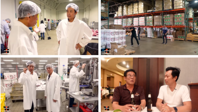 Vân Sơn theo em rể đi thăm quan nhà hàng và nhà máy sản xuất thực phẩm hoành tráng tại Houston.