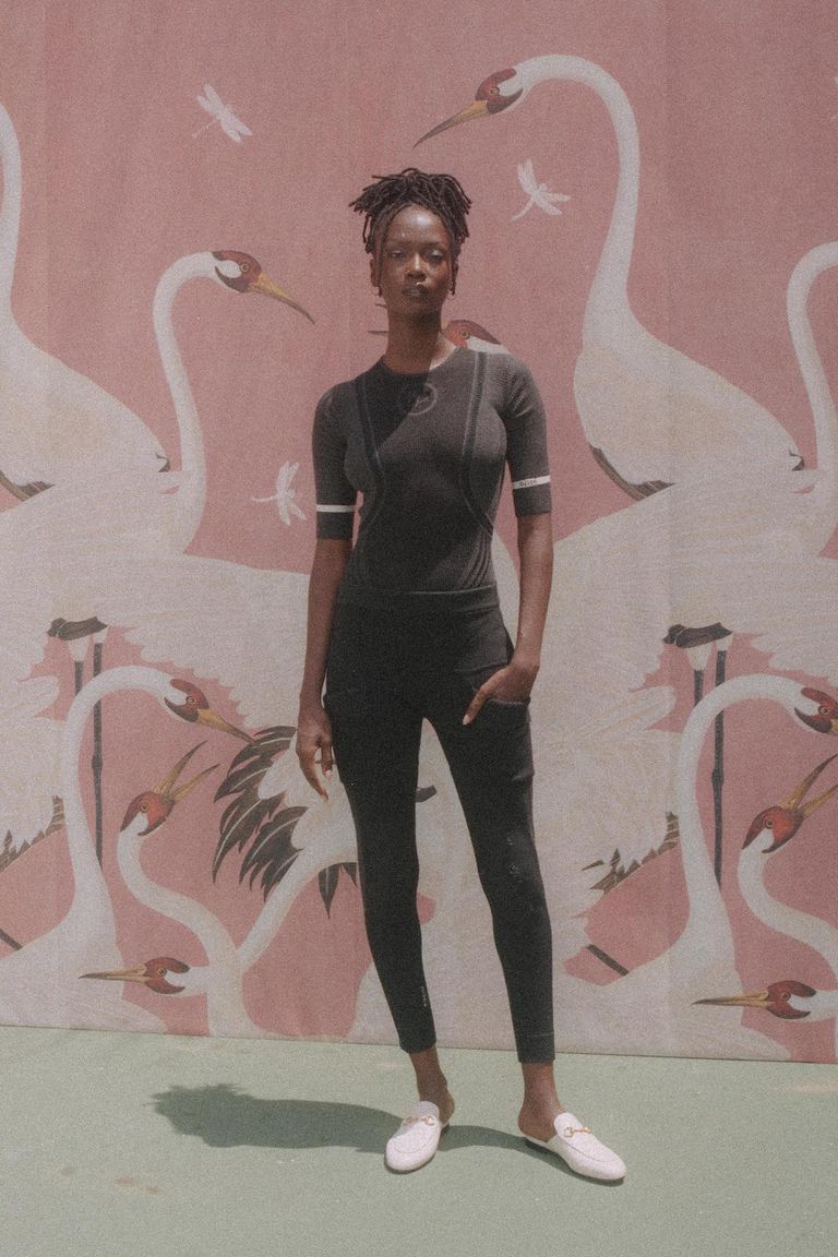 Azede Powered by Gucci tập trung vào hàng dệt kim, nơi cô và Gucci diễn giải lại 'coatigan' (một loại áo lai giữa áo khoác-cardigan) và sử dụng các đường may thú vị và các kết cấu tương phản như đường gân và đường gờ trong bộ đồ liền thân, áo sơ mi xếp nếp phi giới tính và quần điêu khắc . Các sản phẩm có tông màu nhẹ nhàng của hoa hồng, kem, xanh đại dương và đen, và được đóng dấu tinh tế với logo của Jean-Pierre.