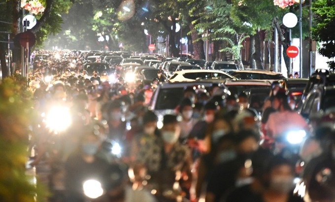 Tối qua (21/9), ngày đầu tiên Hà Nội nới lỏng giãn cách xã hội, chuyển trạng thái chống dịch từ Chỉ thị 16 xuống Chỉ thị 15, hàng nghìn người dân đã đổ ra đường đi chơi Trung thu. Nhiều tuyến phố quanh Hồ Gươm như Tràng Thi, Đinh Tiên Hoàng, Lê Thái Tổ... ùn tắc.