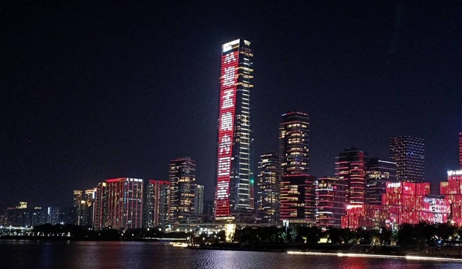 Tòa nhà cao nhất Thâm Quyến, trung tâm tài chính Ping An cao 555 m, cũng được đăng tải thông điệp: "Chào mừng hồi hương, Mạnh Vãn Chu" vào tối qua.