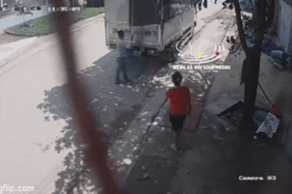 Theo hình ảnh camera giám sát tại hiện trường ghi lại, chiếc ô tô tải đang dừng bên đường, tài xế đang đóng cửa thùng xe để chuẩn bị di chuyển thì bất ngờ 1 chiếc xe máy từ xa lao thẳng tới, "hôn" vào đuôi xe.