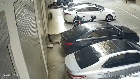 Người dân đi đường ở thành phố Đài Bắc, Trung Quốc đã có một phen thót tim khi đột nhiên. Một người phụ nữ từ trên trời rơi xuống theo đúng nghĩa đen, và "hạ cánh" đánh rầm xuống một chiếc sedan màu đen ở bãi gửi xe.