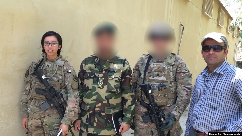 Deanna Tran, trái, trong một lần tới thăm một trung tâm giam giữ ở Afghanistan với sự giúp đỡ về phiên dịch của anh Kohistany, phải, trong thời gian cô được điều động tới đây vào năm 2017-2018. Ảnh Voanews