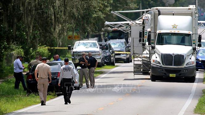 Lực lượng chức năng phong tỏa hiện trường vụ xả súng ở Lakeland, bang Florida, Mỹ ngày 5/9/2021. Ảnh: AP/TTXVN