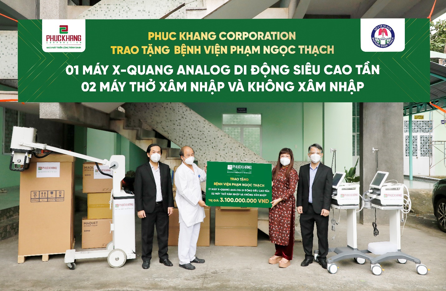 Nỗi trăn trở của lãnh đạo BV Phạm Ngọc Thạch phần nào được vơi đi khi tiếp nhận món quà đặc biệt từ Phuc Khang Corporation. Đó là 1 máy chụp X-quang di động Analog siêu cao tần và 2 máy thở tích hợp hệ thống khí nén với tổng giá trị hơn 3,1 tỉ đồng. Trong đó, máy chụp X-quang có hình ảnh chất lượng chuẩn xác, độ an toàn cao và dễ dàng di chuyển. 2 chiếc máy thở được trao tặng trong đợt này cũng thuộc dòng hiện đại nhất tại Việt Nam hiện nay, tích hợp bộ phun khí với công nghệ siêu âm, hoạt động độc lập với hệ thống khí âm tường nhờ công nghệ tuabin.