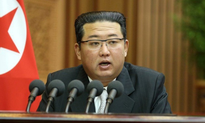 Kim Jong-un phát biểu trước Hội đồng Nhân dân Tối cao hôm 30/9. Ảnh: KCNA.