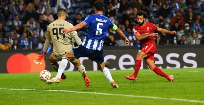 Salah ghi bàn trong trận Liverpool thắng chủ nhà Porto 5-1 tại Champions League hôm 29/9. Ảnh: AFP
