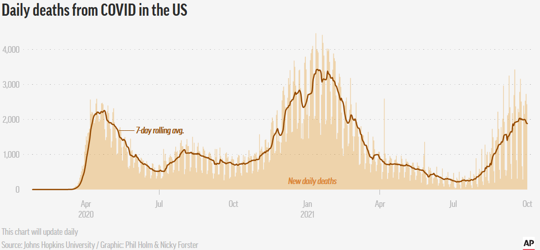 The milestone is deeply frustrating to doctors, public health officials and the American public, who watched a pandemic that had been easing earlier in the summer take a dark turn. Tens of millions of Americans have refused to get vaccinated, allowing the highly contagious delta variant to tear through the country and send the death toll from 600,000 to 700,000 in 3 1/2 months.