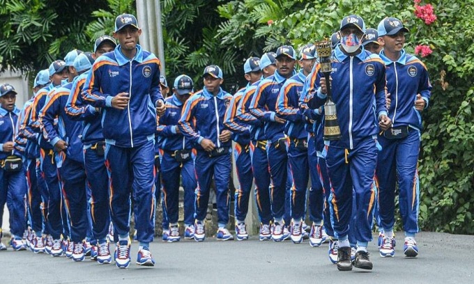 Lễ rước đuốc Tuần lễ Thể thao Quốc gia Indonesia tại thành phố Jayapura, Papua ngày 1/10. Ảnh: ANTARA FOTO.