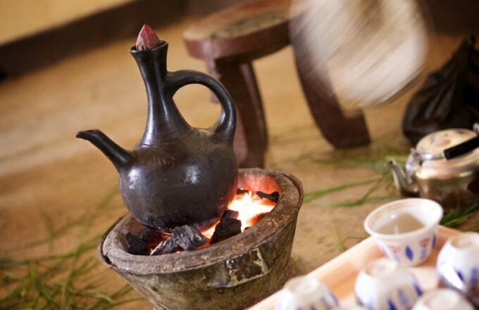 Ở Ethiopia, nơi được cho là khai sinh ra cà phê, các nghi lễ truyền thống của việc uống cà phê được coi là một phần đặc sắc của văn hóa dân gian. Quy trình pha chế và phục vụ cà phê kéo dài 2 tiếng. Buna là tên gọi cà phê ở đây, và được phục vụ cùng muối hoặc bơ, thay vì đường. Ảnh: Sinethemba