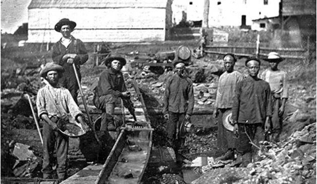 Những người thợ mỏ da trắng và người Hoa trong Cơn sốt vàng ở California năm 1852 (Ảnh: SCMP)