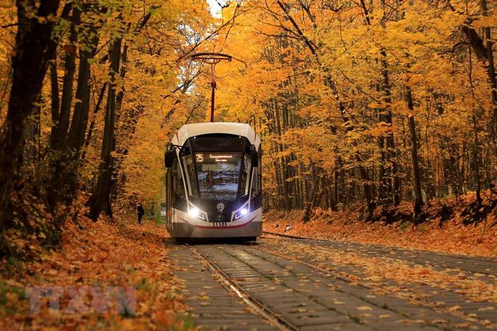 Cuối tháng 9 đến đầu tháng 10 hàng năm, nước Nga bước vào mùa Thu. Sắc vàng óng ả của những rặng cây phong đỏ, sồi, bạch dương rực khắp không gian cảnh vật từ thành phố đến khắp các làng quê. (Ảnh: Trần Hiếu/TTXVN)
