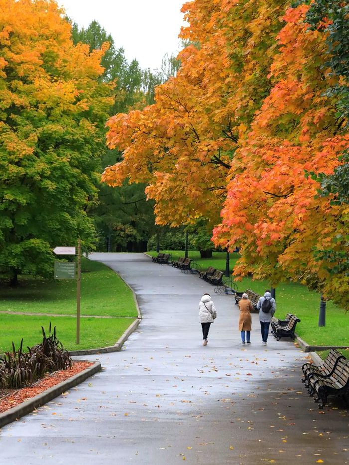 Hàng cây trong công viên Kolomenskoe chuyển sang màu đặc trưng của mùa Thu. (Ảnh: Trần Hiếu/TTXVN)