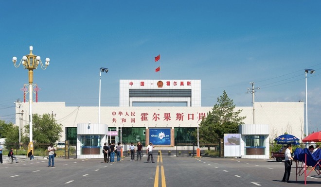 Cửa khẩu biên giới Trung Quốc - Kazakhstan ở thành phố Khorgos.