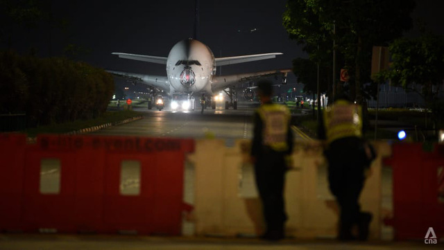 Lúc 22h30 ngày 4/10, trên một con đường vắng người qua lại dẫn tới một trong các cổng của sân bay Changi, những chiếc máy phun sương miệt mài làm ẩm mặt đường. Cảnh sát và đội hỗ trợ nỗ lực chặn cả con phố. Phía sau hàng rào, một chiếc máy bay khổng lồ lặng lẽ và chậm rãi lướt tới cánh cổng.