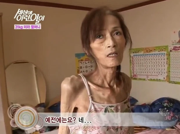 Câu chuyện của người phụ nữ sở hữu ngoại hình chỉ còn da bọc xương này được chương trình thực tế "Capture the Moment, How Is It Possible" kể lại. Trong đó, nhân vật chính là người bà gầy nhom, hầu hết thời gian trong ngày chỉ dành để nằm trên giường, đi vệ sinh cũng cần phải có sự hỗ trợ của cháu gái bởi vì việc nâng đôi chân lên độ cao chỉ 10cm cũng vô cùng khó khăn với bà.