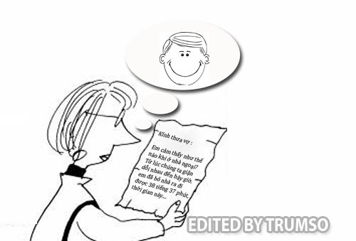 Anh ở nhà mọi thứ đều rất tốt, xin em đừng nhung nhớ. Mặc dù, trước lúc ra đi, em đă kịp lấy được thẻ ngân hàng cất trong ngăn tủ, tuy nhiên em đừng lo lắng anh sẽ sống bằng cái ǵ, bởi v́ anh vẫn c̣n một chút tiền lẻ giấu dưới giường của con. Thực ra th́ tiền mặt thuận tiện cho việc sử dụng hơn em à. Anh đă mua 5 chiếc áo sơ mi, 7 chiếc quần lót và 12 đôi tất, ước tính mỗi ngày có thể mặc một chiếc cho đến ngày em quay về. Tất cả đều là hàng hiệu, mặc dù hơi tốn kém một tí...