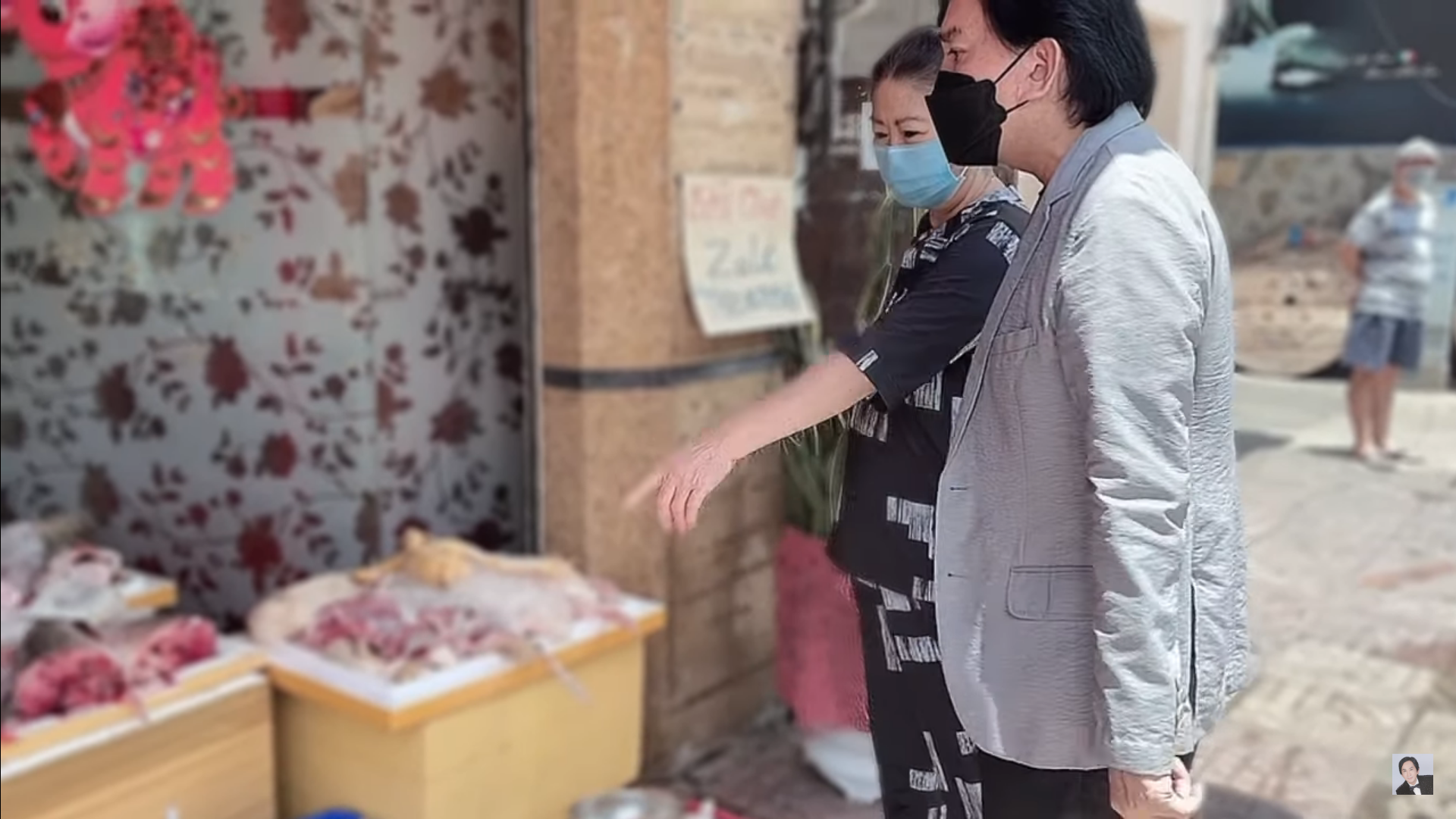 Tại đây, Kim Tử Long dắt tay đàn chị ra hàng cá trước hẻm và bảo: "Chị coi ở đây cá gì, thịt gì chị ăn được thì cứ lựa thoải mái, em mua cho chị".