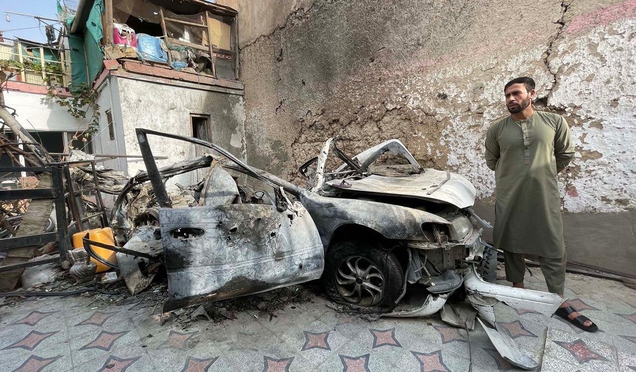 Ngôi nhà và ô tô bị hư hại sau vụ tấn công bằng máy bay không người lái của Mỹ, giết chết 9 thành viên trong một gia đình ở Kabul, tháng 8/2021. Ảnh: AFP
