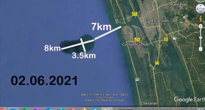 Người đàn ông tên KX Julappan, chủ tịch của tổ chức du lịch Chellanam Karshika, đă chụp và chia sẻ h́nh ảnh trên mạng xă hội. Những bức ảnh cho thấy cấu trúc nằm cách cảng Kochi khoảng 7 km, dài khoảng 8 km và rộng 3,5 km