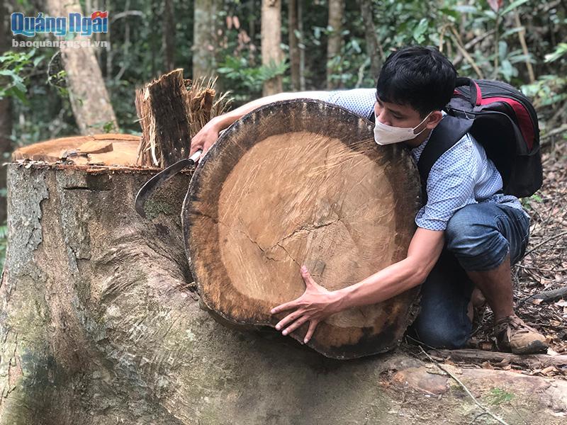 Từ nguồn tin của người dân, đúng 5 giờ sáng ngày 12/10, chúng tôi bí mật đi bộ vào khu vực rừng phòng hộ ở xã Sơn Long. Sở dĩ phải xâm nhập bí mật vì theo thông tin mà chúng tôi nhận được, các đối tượng phá rừng thường xuyên cảnh giới nên nắm bắt thông tin rất nhanh. Nếu có người lạ vào cửa rừng, các đối tượng sẽ nhanh chóng thông báo cho nhau, di tản đến khu vực khác.Sau hơn một giờ đồng hồ thâm nhập sâu vào rừng, trước mắt chúng tôi hiện ra hàng chục cây gỗ lớn... có đường kính từ 50cm đến hơn 1m bị triệt hạ. Chủ tịch UBND xã Sơn Long Đỗ Thanh Vượt đã từng thông tin với chúng tôi rằng, lâm tặc lén lút vào sâu trong rừng phòng hộ và lựa chọn những cây gỗ to nhất, tốt nhất để triệt hạ chứ không bao giờ đốn hạ gỗ "dỏm".