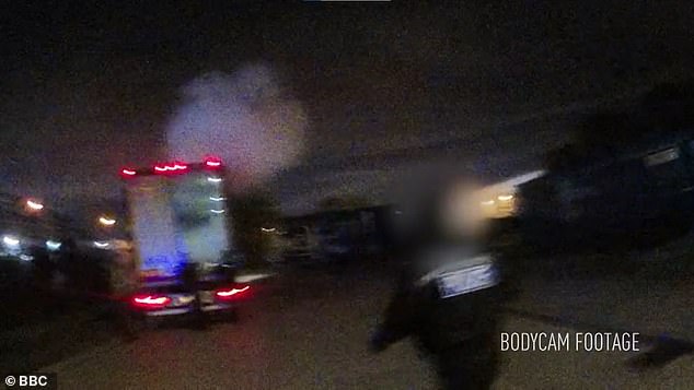 Đoạn phim ghi lại cảnh các nhân viên y tế và cảnh sát mở cửa container