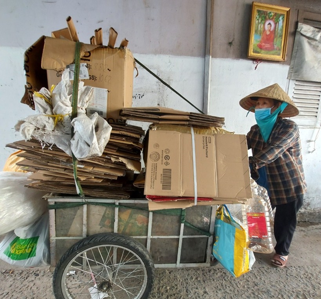 Bà Nguyễn Thị Lướt, quê Quảng Ngãi, vẫn phải tất bật mưu sinh trong dịch COVID-19.