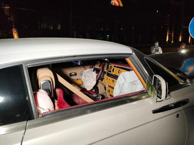 Dựa vào những hình ảnh về vụ tai nạn được chia sẻ có thể thấy, chiếc Rolls-Royce đã va chạm với dải phân cách dẫn đến hư hỏng nặng, đặc biệt là phần đầu. Tất cả túi khí bên trong xe đều đã bung, gương chiếu hậu hai bên cũng bị bể. Toàn bộ mặt ca-lăng xe bị xẻ làm đôi, nhiều khả năng sẽ ảnh hưởng lớn đến phần máy.