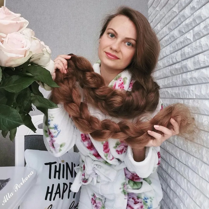 Alla Perkova (38 tuổi) là người mẫu, MC tại Ukraine. Cô nổi tiếng với mái tóc dài màu nâu óng ả. Bộ tóc đặc biệt cũng giúp cô có hơn 35.000 người theo dõi trên mạng xã hội, theo New York Post.