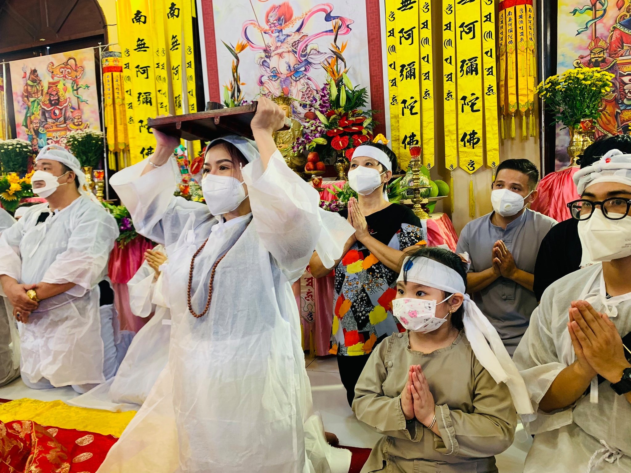 Bình Tinh trong lễ Chung thất 49 ngày của 4 người thân.