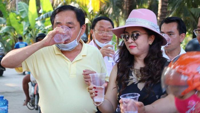 Một lần vợ chồng bà Hằng đi tặng hệ thống xử lý nước sạch cho người dân miền Tây