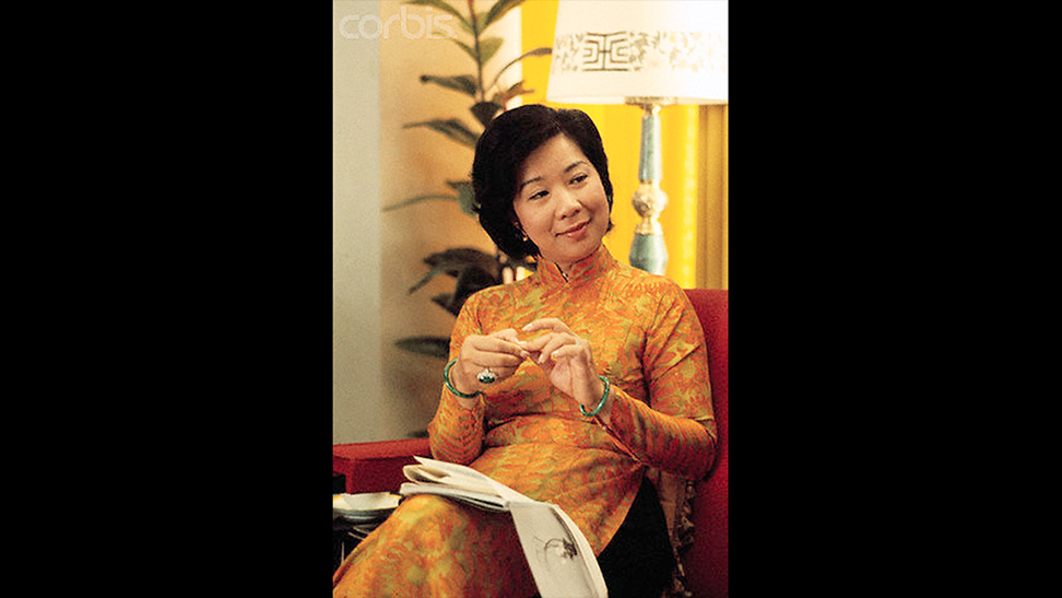 Trả lời báo chí ngày 11 Tháng 3 năm 1970, Đệ Nhất Phu Nhân Nguyễn Thị Mai Anh nói rằng bà không bao giờ bàn luận với chồng về công việc của chính phủ. “Sự quan tâm của chồng tôi là chính trị, còn sự quan tâm của tôi là phúc lợi xã hội, và tôi có thể giúp chồng tôi theo cách này.” – Ảnh Bettmann/CORBIS