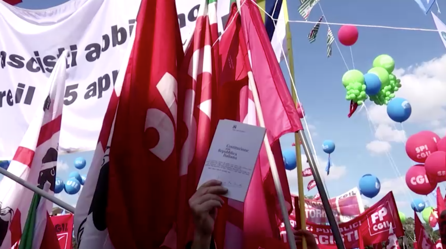 Nhiều người tham dự cuộc biểu tình vào hôm thứ Bảy đã vẫy lá cờ đỏ của CGIL khi họ diễn hành từ khu vực gần nhà ga chính của thành phố đến quảng trường trung tâm San Giovanni vào một buổi chiều nắng đẹp. Các công đoàn chính của Ý là CGIL, CISL và UIL đều kêu gọi chính phủ giải tán các nhóm chủ nghĩa phát xít mới và chủ nghĩa quốc xã mới tại cuộc biểu tình. Các nhà tổ chức ước tính có khoảng 50,000 đến 60,000 người đã tham gia.