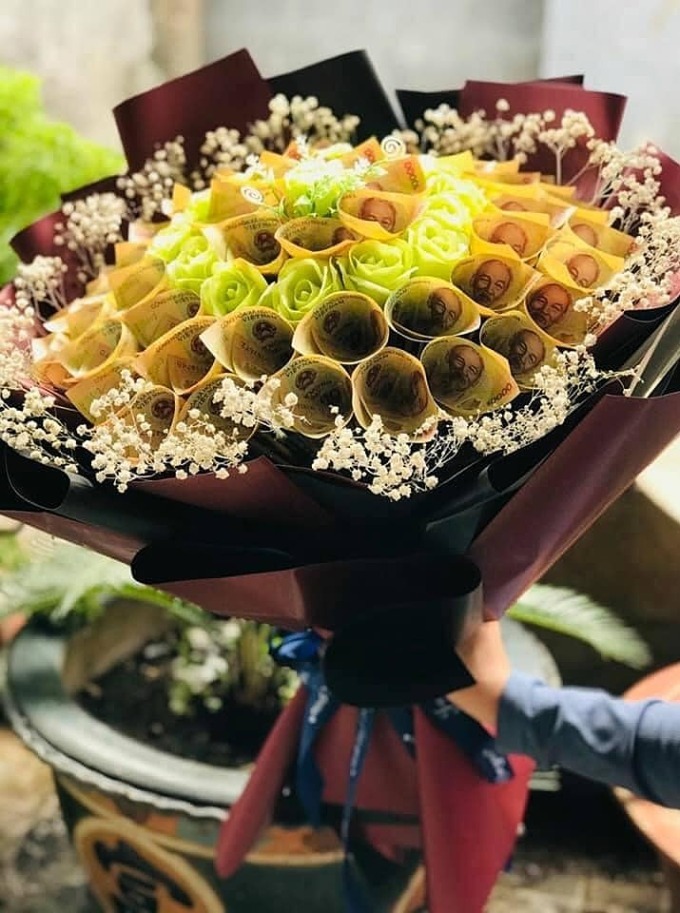"So với hoa thông thường thì hoa tiền thật lượng đặt hàng tăng gấp đôi. Bó hoa thấp nhất giá 1 triệu đồng và bó giá cao nhất 50 triệu đồng. Với bó 50 triệu đồng được làm bằng 99 tờ tiền 500.000 đồng", chủ cửa hàng trên nói.