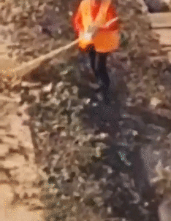Một đoạn video quay cảnh một chiếc máy bay trực thăng đột ngột sà xuống đất đang lan truyền cho thấy, phi công đang bay trên cao thì nhìn thấy bên dưới có một người lao công đang quét lá trên đường, khiến anh chàng phi công liền điều chỉnh máy bay thấp xuống rồi làm việc này.