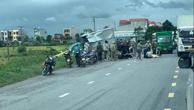 Cú va chạm mạnh khiến người vợ ngồi sau xe văng ra đường và bị xe cán tử vong tại chỗ, còn anh chồng và con nhỏ đều bị thương.