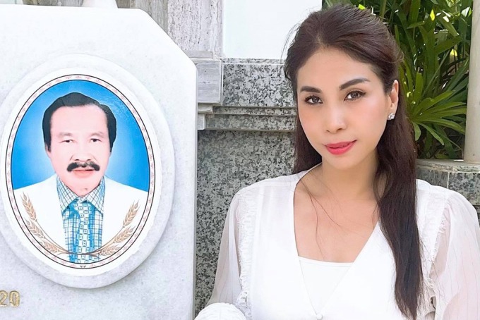Lý Hương viếng mộ cha - nghệ sĩ Lý Huỳnh - chiều 22/10. Ảnh: Nhân vật cung cấp